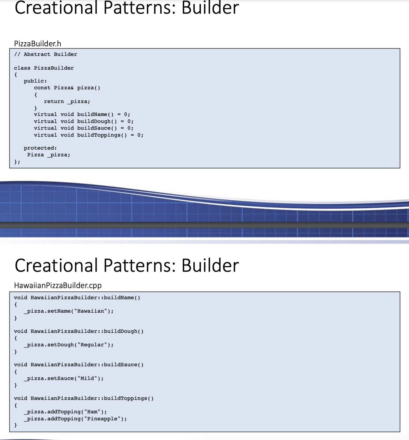 Builder creational design pattern example: