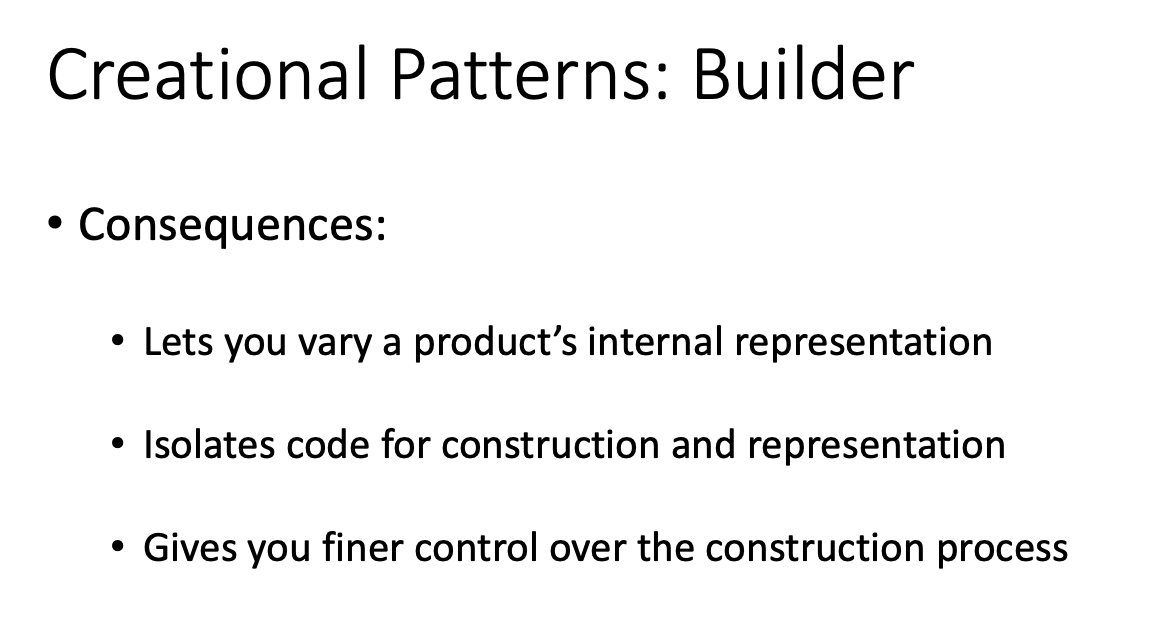 What are the consequences of using the builder creational design pattern?