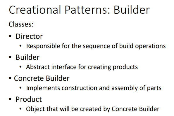 What are the following with regards to the builder creational design pattern?
