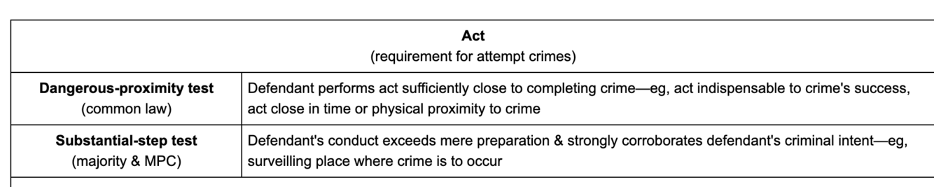 -An overt act in furtherance of the unlawful act (only required for half the states and the MPC)