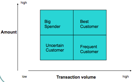 How can you segment the customers when you take the transaction volume and the amount in consideration? Draw a figure.
