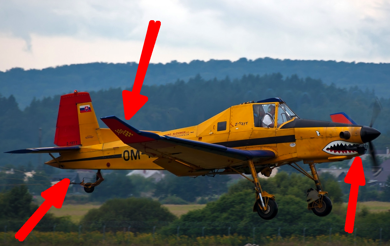 -Large wings that look as though they are about to break off; also the tips of the wings are tapered giving this aircraft an odd look.