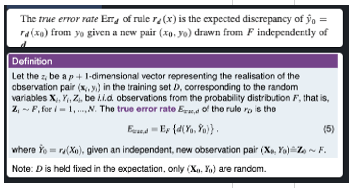 “Ideally, we would measure the true error rate, namely the error rate corresponding to observations from the true prob. distribution F.