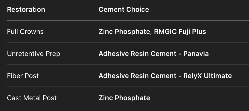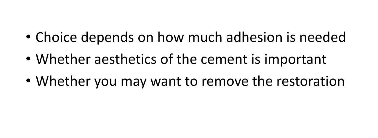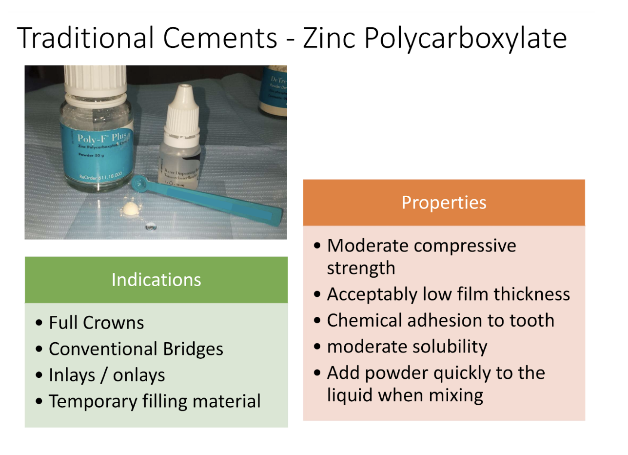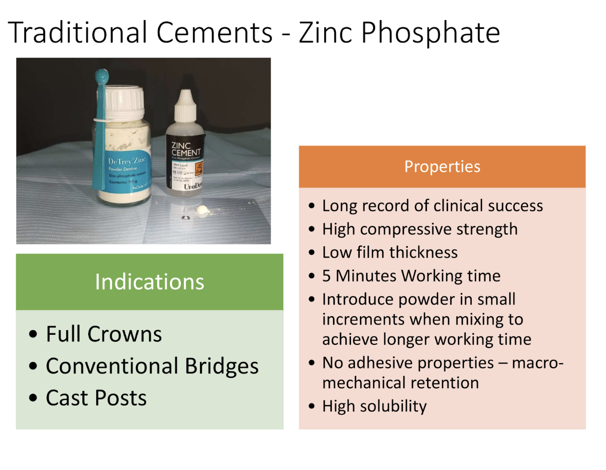 Traditional Cements: Zinc phosphate & zinc polycarboxylate.