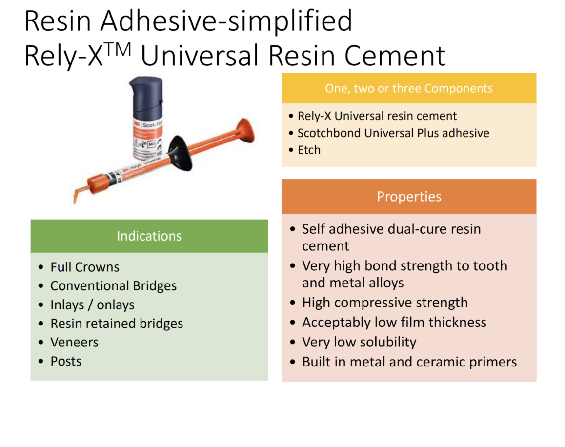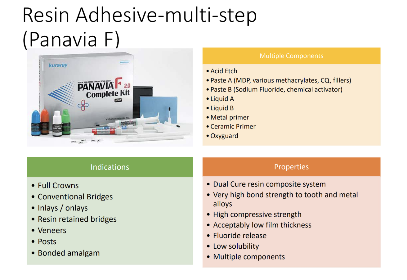 Resin Cements: Multi-step adhesive, simplified, and all-in-one adhesive.