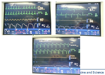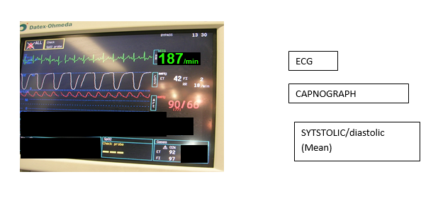 1 hour into surgery this is what you see - the heart rate is too high. Lots of things could have caused this, most likely pain or light anaesthesia. You have given analgesia, checked the anaesthetic depth etc. You note the following