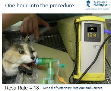 You manage to stabilise the patient and surgery continues. It is now 4 hours since the dog received his methadone. Vaporiser settings have been increased as the dog was too light.