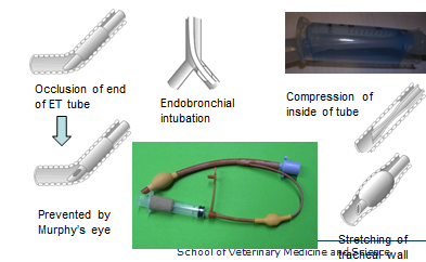 Care with over inflation, can occlude tubes and cause a significant narrowing!! Significant in small ET tubes, espeically cats - gets worse as they warm up and tube becomes more pliable, so bend gets more and can be a real problem