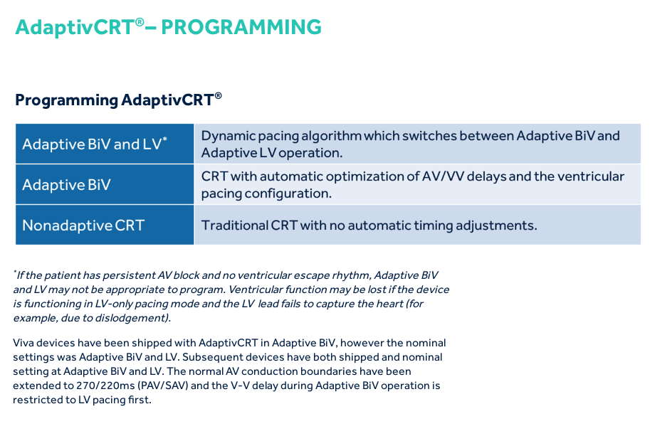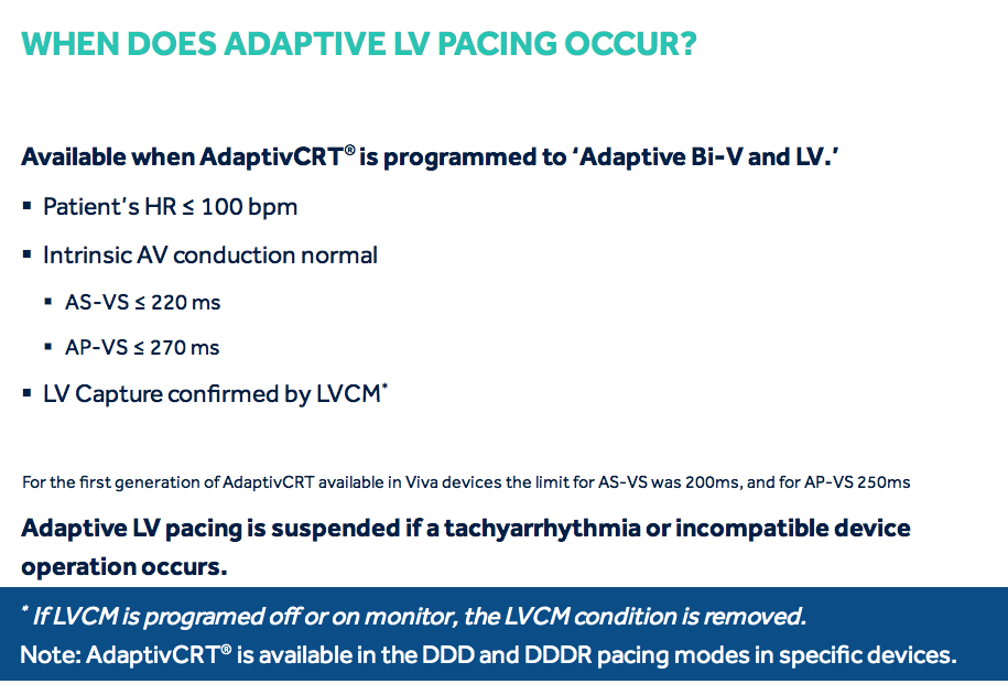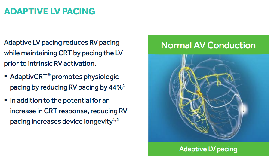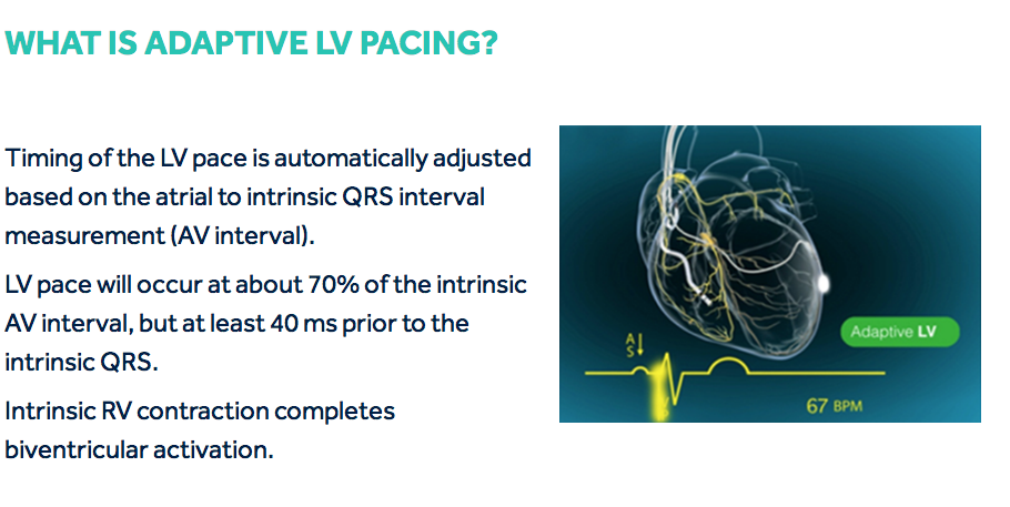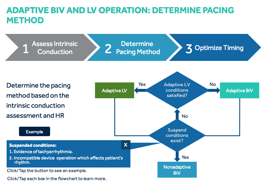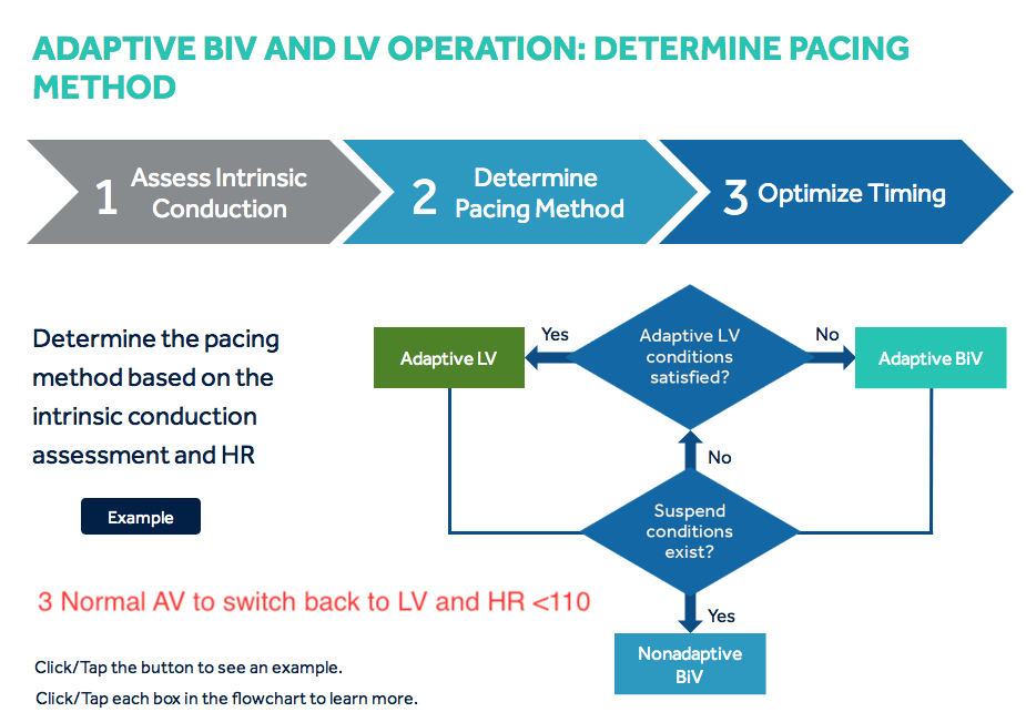 Step 2: The device determines the pacing method to be either Adaptive LV or Adaptive Bi-V.