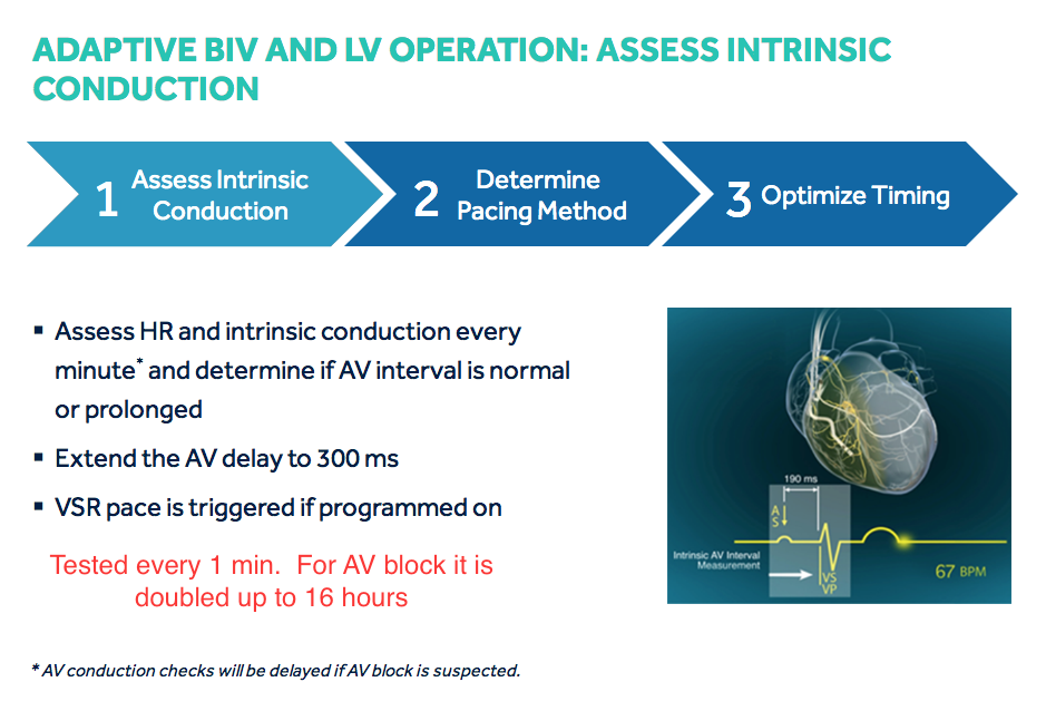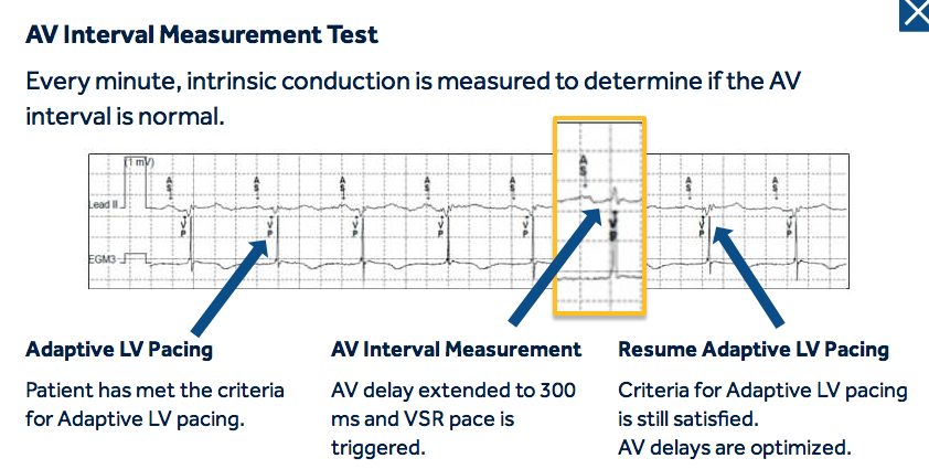 Step 1: The device assesses intrinsic conduction to determine if a patient’s AV interval is normal or prolonged.