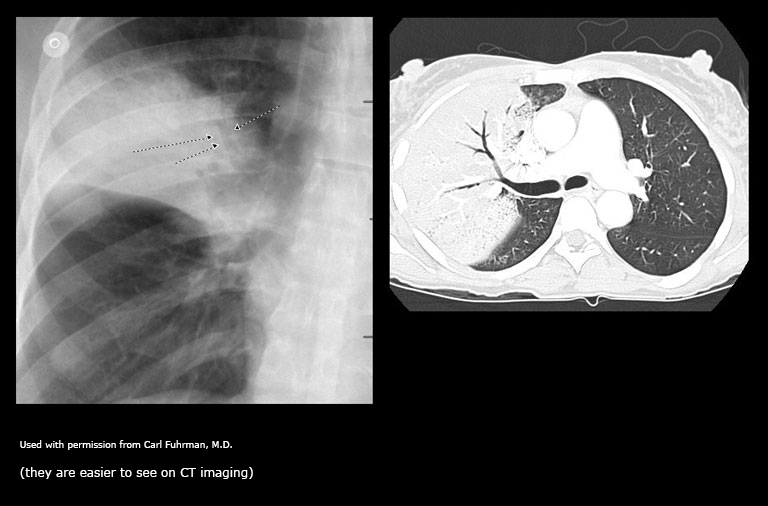 Other things can cause an apparent nodule but are actually outside the lung including: