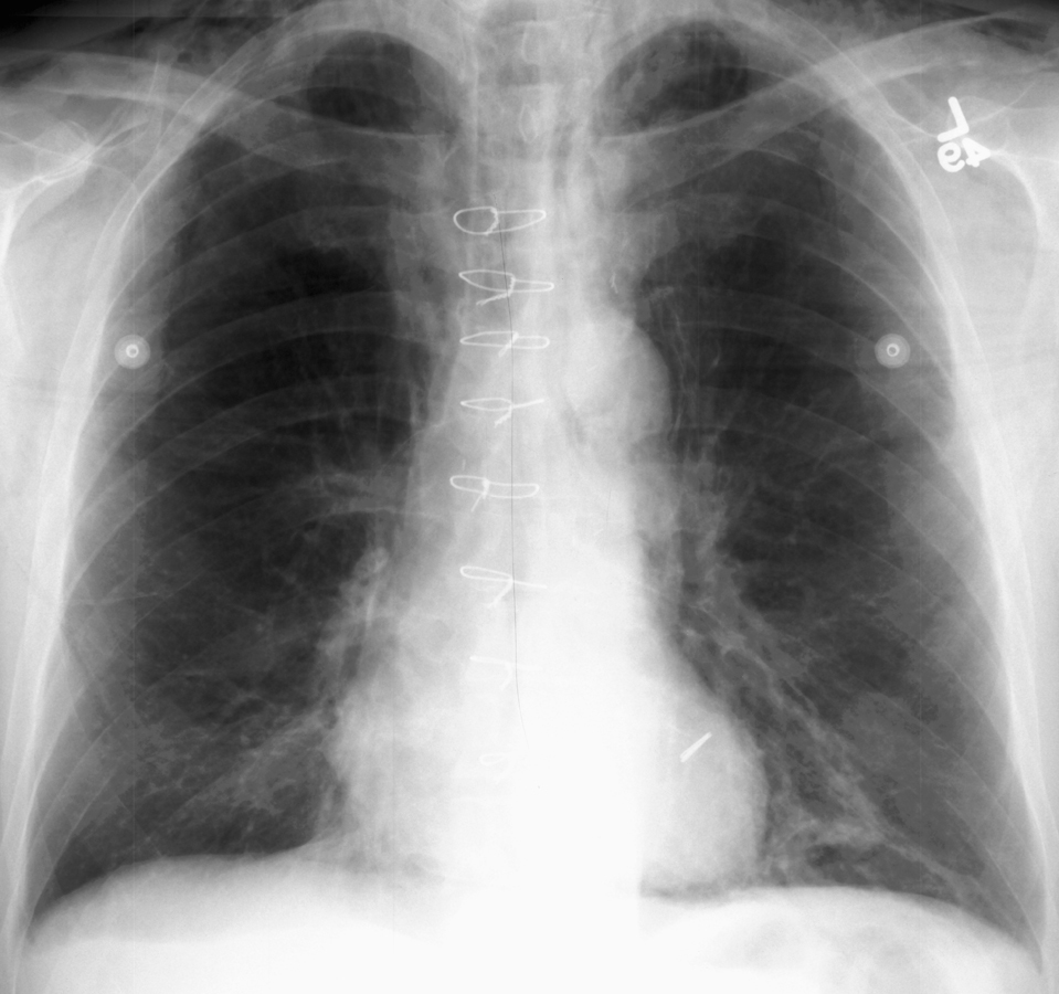 Loss of the appearance of a normal descending thoracic aorta (no ‘lateral aortic silhouette’ is seen).