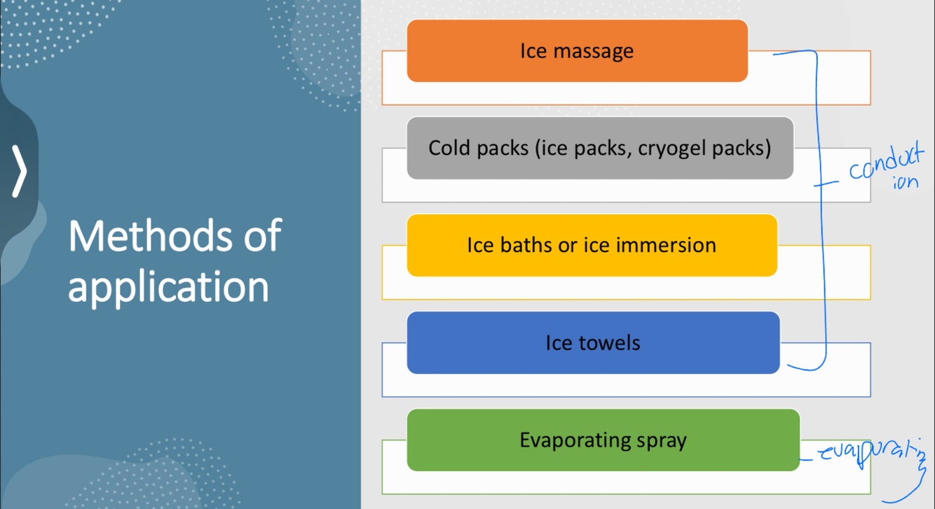 The rate of initial cooling is rapid but decreases as a film of water forms between the pack and the skin