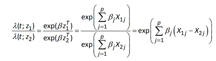 Ratio of hazards of lives with covariate vectors z1 and z2 (Cox PH model)