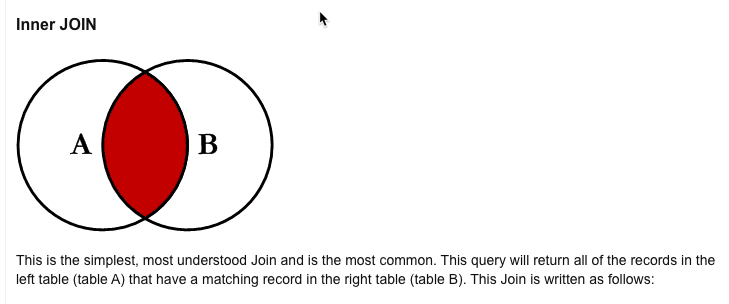Inner-join (A, B) (default): Keep only rows of A and B where the on-keys match in both.
