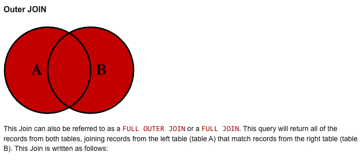 Outer-join (A, B): Keep all rows of both frames, but merge rows when the on-keys match. For non-matches, fill in missing values with not-a-number (NaN) values.