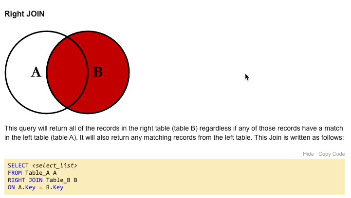 Right-join (A, B): Keep all rows of B. Only merge rows of A whose on-keys match B.
