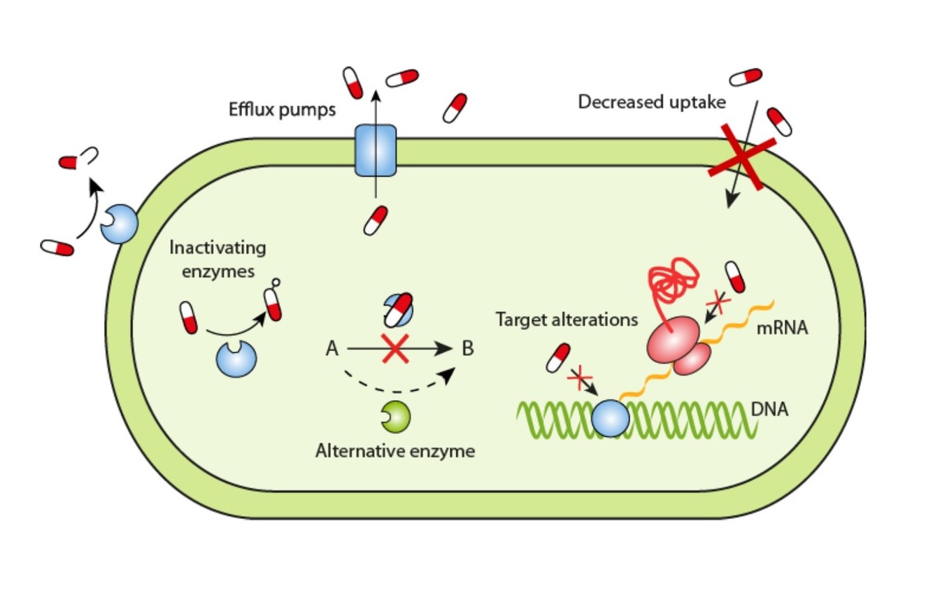 What are the molecular mechanisms by which bacteria can be resistant to antibiotics?