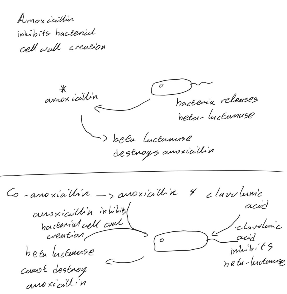 Why can pathogens be sensitive to Co-amoxiclav but when they show no sensitivity to amoxicillin?