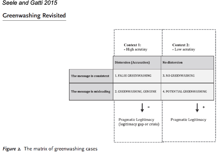 What does greenwashing have to do with finances? What is the 2x2 matrix of greenwashing cases?