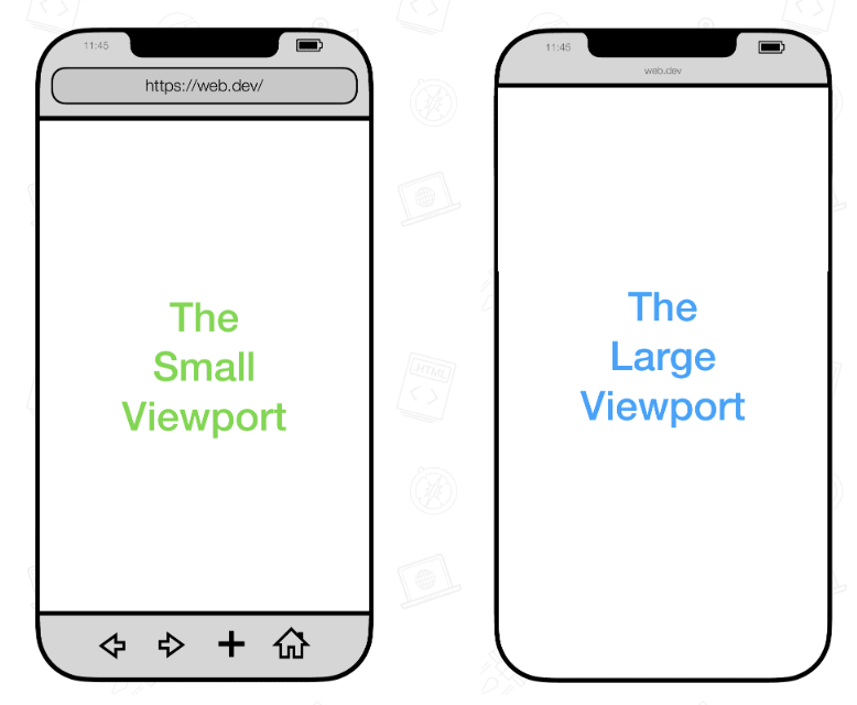 For small, large, and dynamic viewport sizes, the respective viewport-percentage units are svh, lvh, and dvh. vh represents the viewport-percentage length unit based on the browser default viewport size.