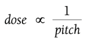 E.g. 0.5s rotation time, 40mm detector width -> what table feed required to achieve pitch of 1? = 80mm/s
