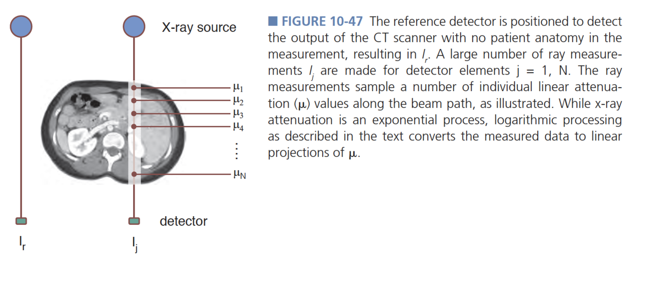 Forward projection = Result of linear attenuation data recieved at detectors. RAW DATA as yet not used to produce CT image