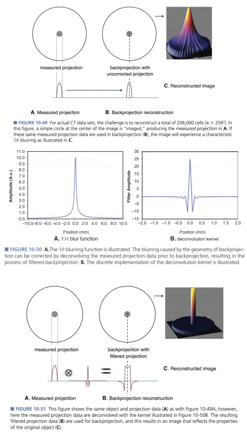 Filtered back projection = DECONVOLUTION KERNEL applied -> Shapens edges to control for 1/r blurring.