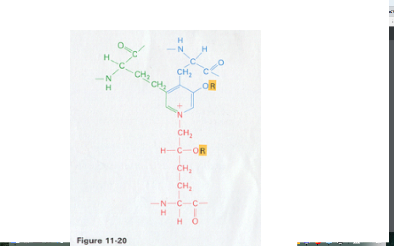 (cross link in collagen or elastin)