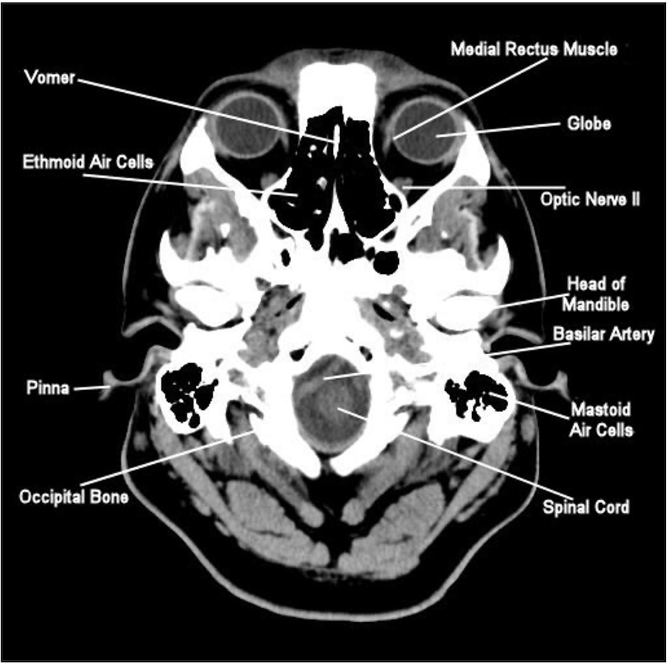 What would you see at the base of skull CT scan ?