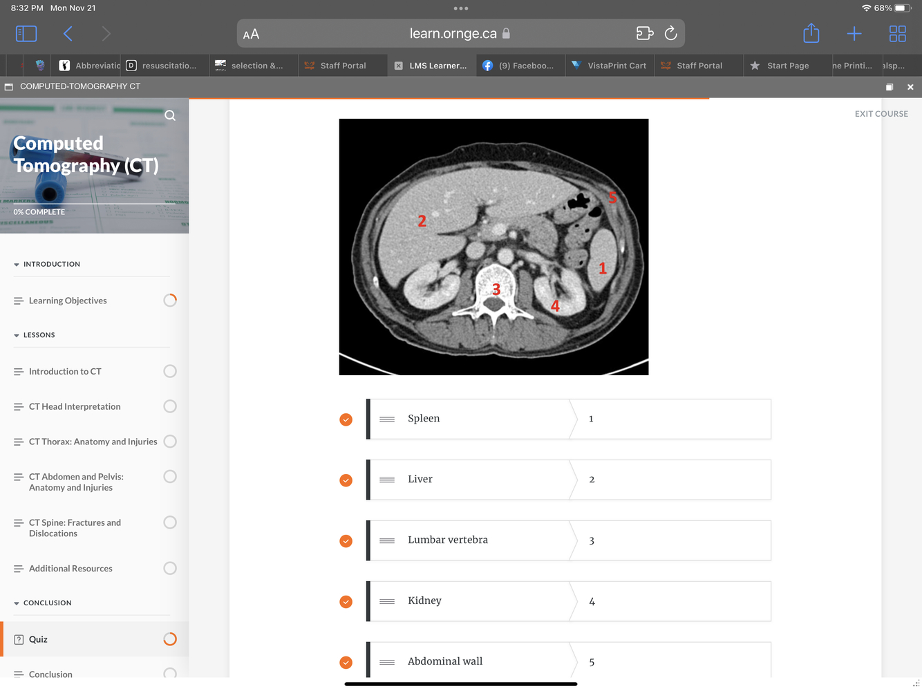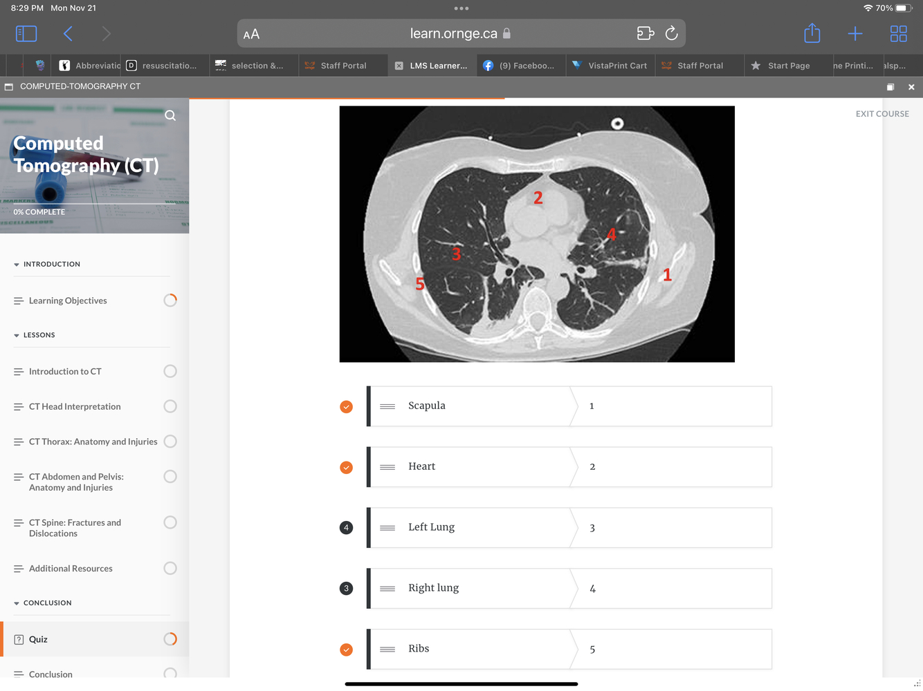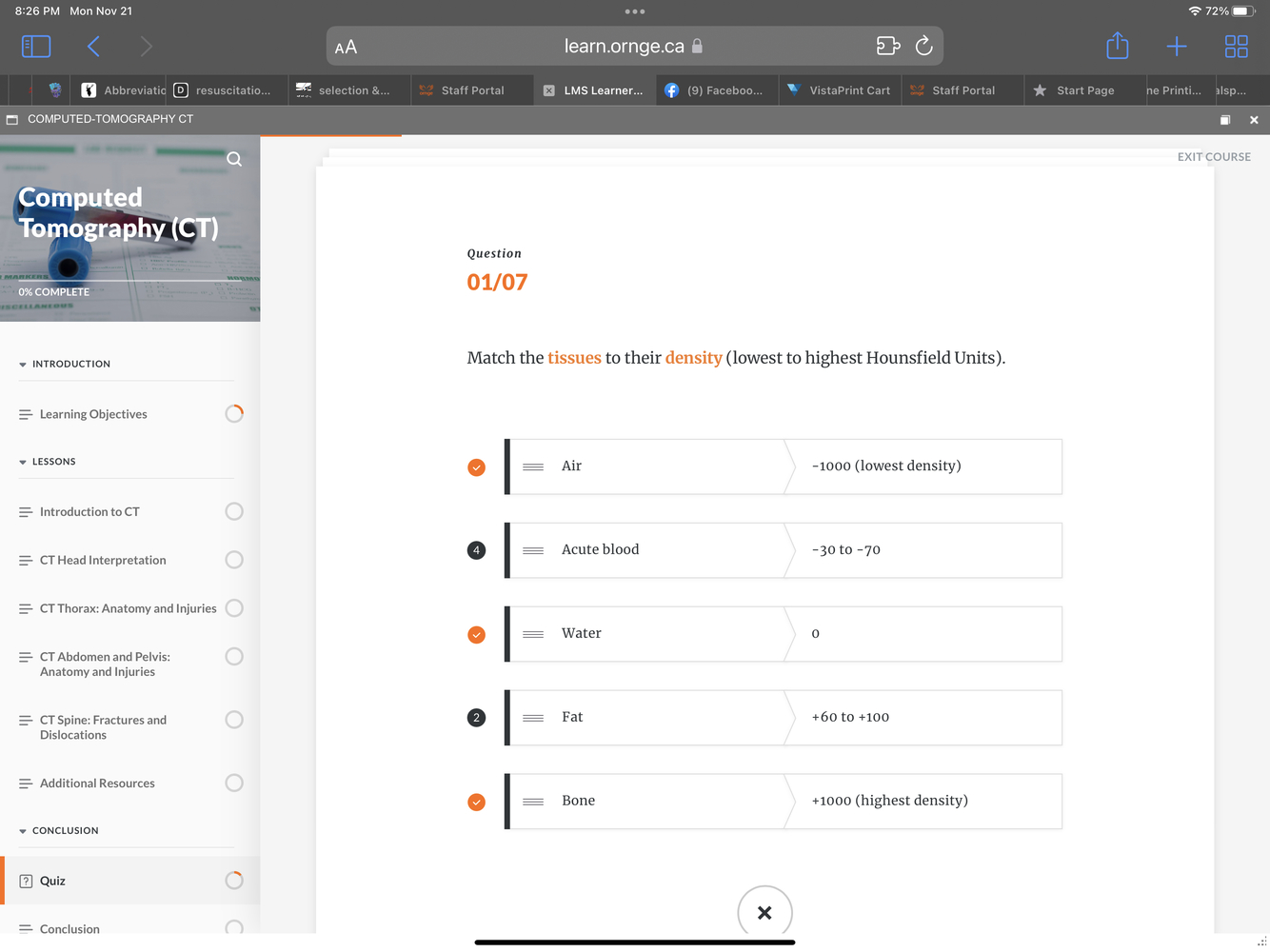 Match the tissues to their density (lowest to highest Hounsfield Units).
