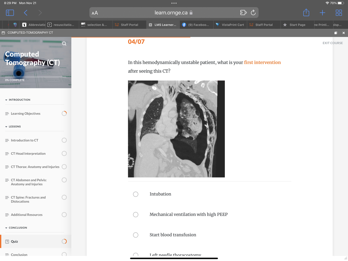 in this hemodynamic unstable patient, what is your first intervention after seeing this CT