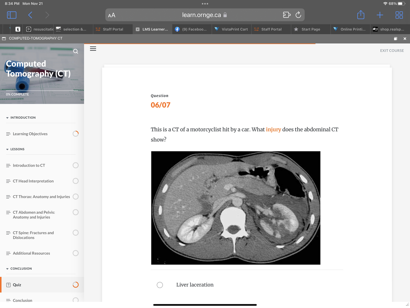 This is a CT of a motorcyclist hit by a car. What injury does the abdominal CT show