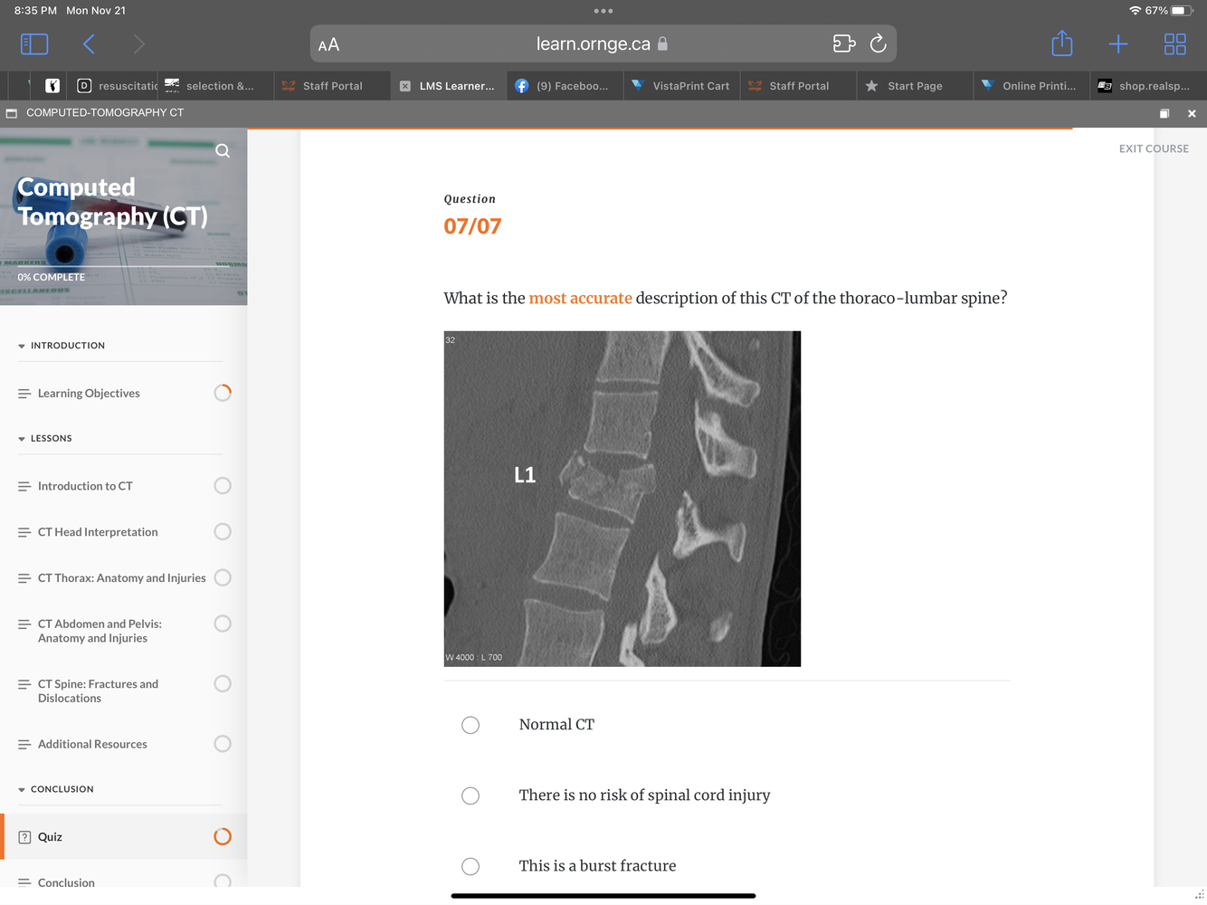 what is the most accurate description of this CT of the thoraco-lumbar spine