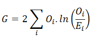 If Oi is the observed frequency in a cell, E is the expected frequency on the null hypothesis, and the sum is taken over all non-empty cells, G is calculated as: