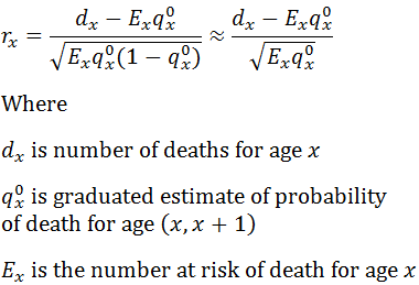 For the Binomial mortality model (and thus approximately for the Poisson model), the Pearson residual is given by: