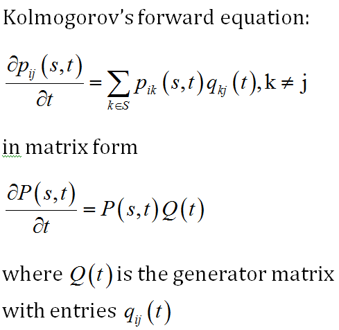 Define Kolmogorov’s Forwards Equation for Markov Jump Processes