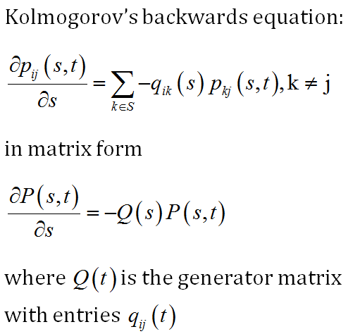 Define Kolmogorovs Backwards Equation for Markov Jump Processes