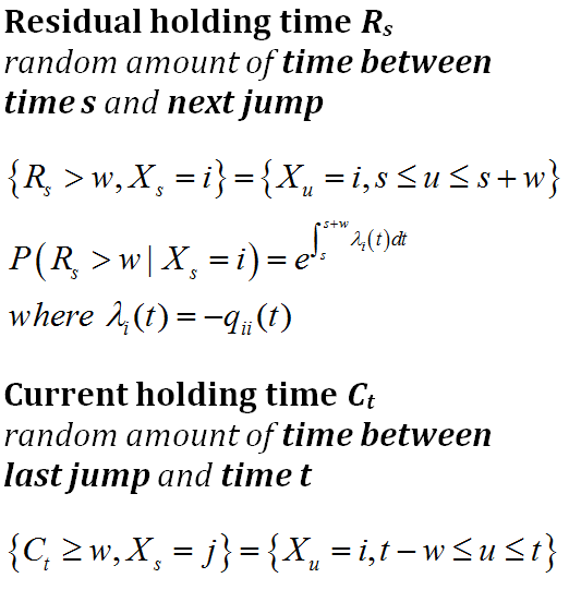 Define Residual and Current Holding Times for Markov Jump Processes