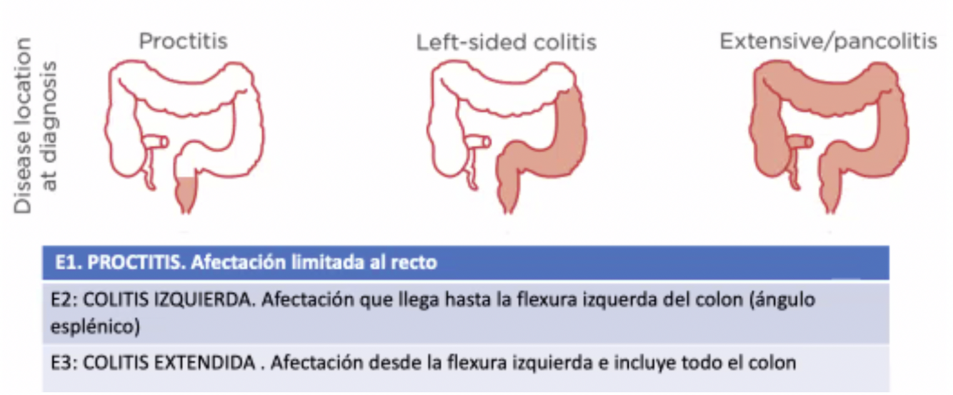 subtipo de enf inflamatoria intestinal caracterizada por la inflamacion de la mucosa colonica que se extiende de manera proximal y continua a partir del recto