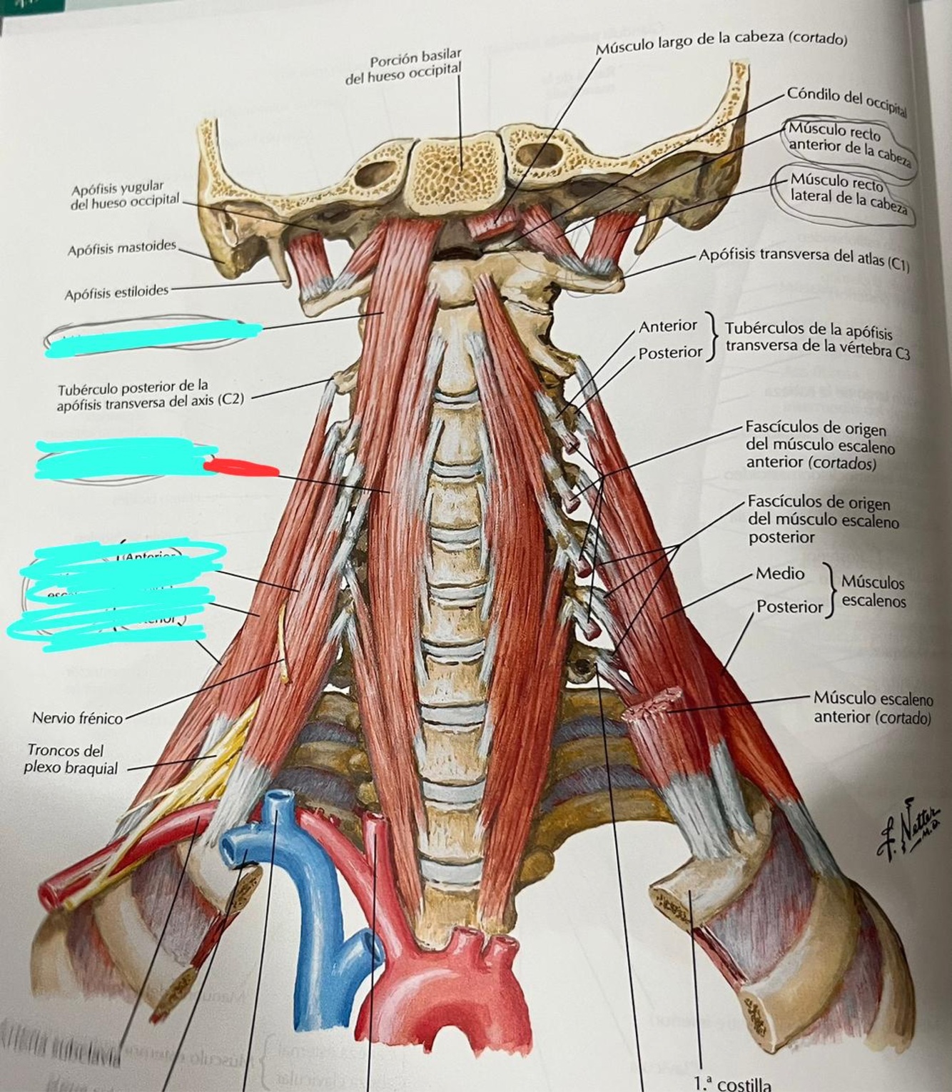 Identifica los músculos pre-vertebrales del cuello