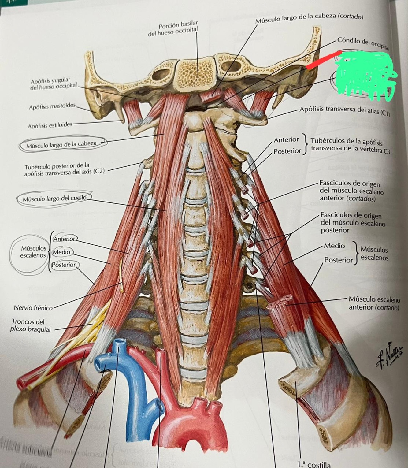 Nervio que sale del cuello por delante del músculo escaleno anterior