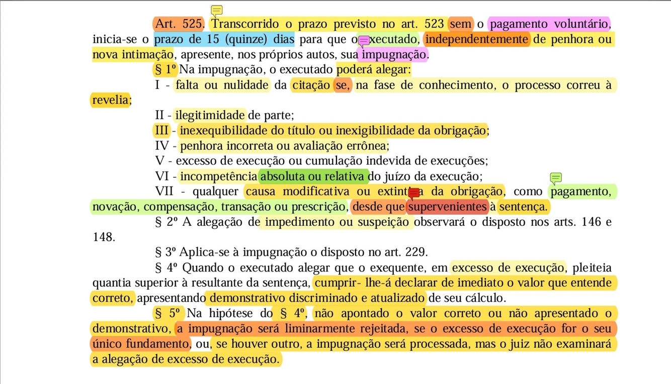 Art. 525. Transcorrido o prazo previsto no art. 523 sem o pagamento voluntário, inicia-se o prazo de 15 (quinze) dias para que o executado, independentemente de penhora ou nova intimação, apresente, nos próprios autos, sua impugnação.