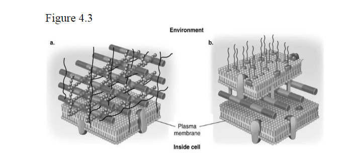 In Figure 4.3, which diagram of a cell wall has a periplasm?
