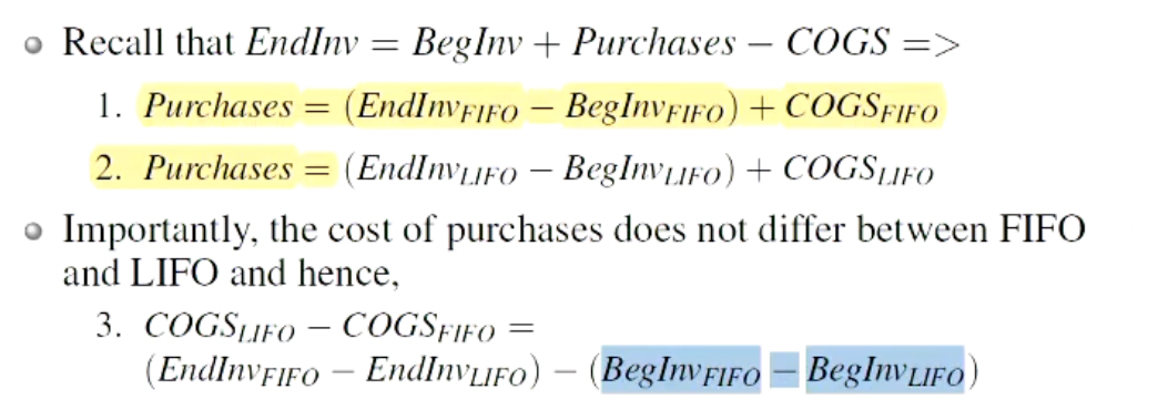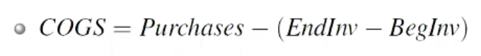 So if we recall the EndINv equation = BegInv + Purchases - COGS