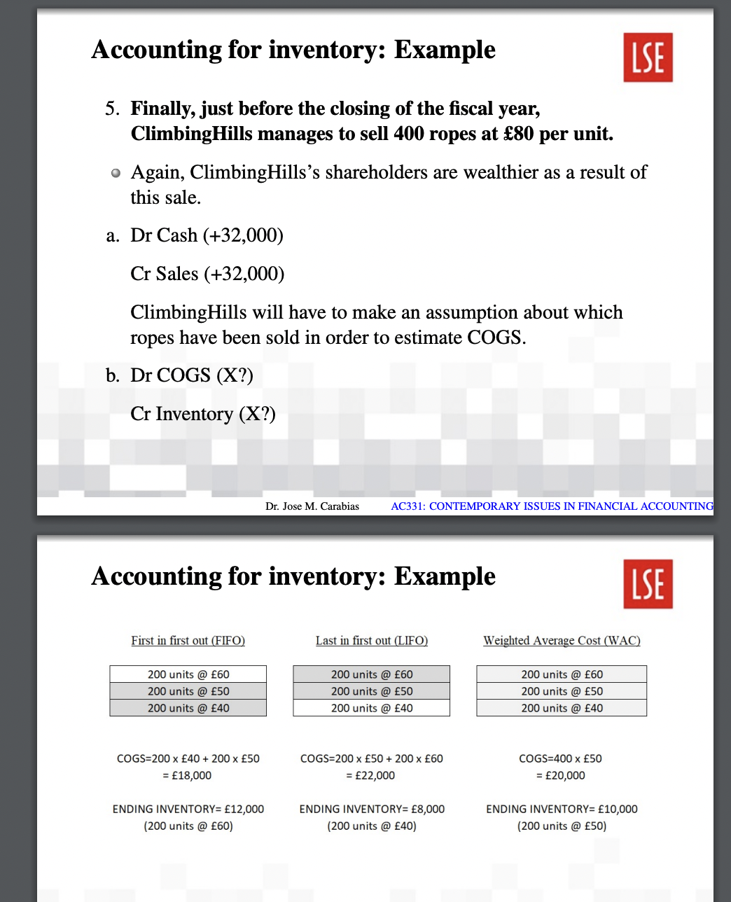 4) As the year end approaches, ClimbingHills decides to make two subsequent purchases of 200 ropes at £50 per unit and another 200 ropes at £60 per unit.