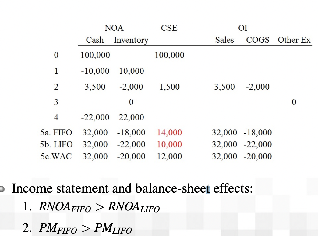 RNOA fifo > RNOA lifo as COGS tends to be lower hence HIGHER OI.