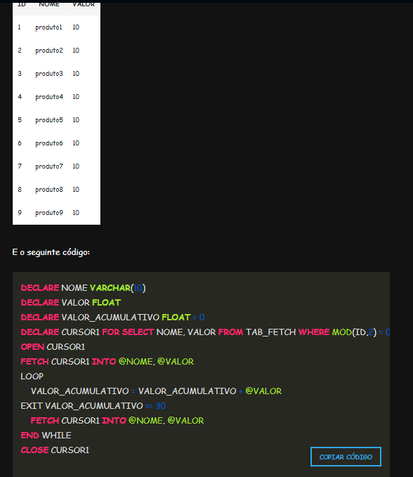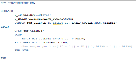 Observação: o código acima não usa uma sintaxe PL/SQL e sim uma sintaxe de pseudocódigo.