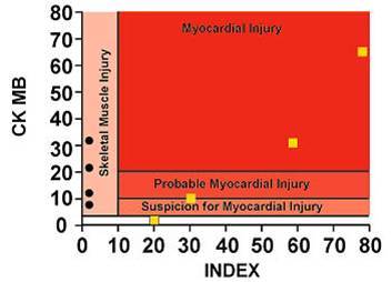 Creatinine Kinase; CK- Isoenzymes (Fractions), Troponins - I & T, LDH - 1-5, Myoglobin.