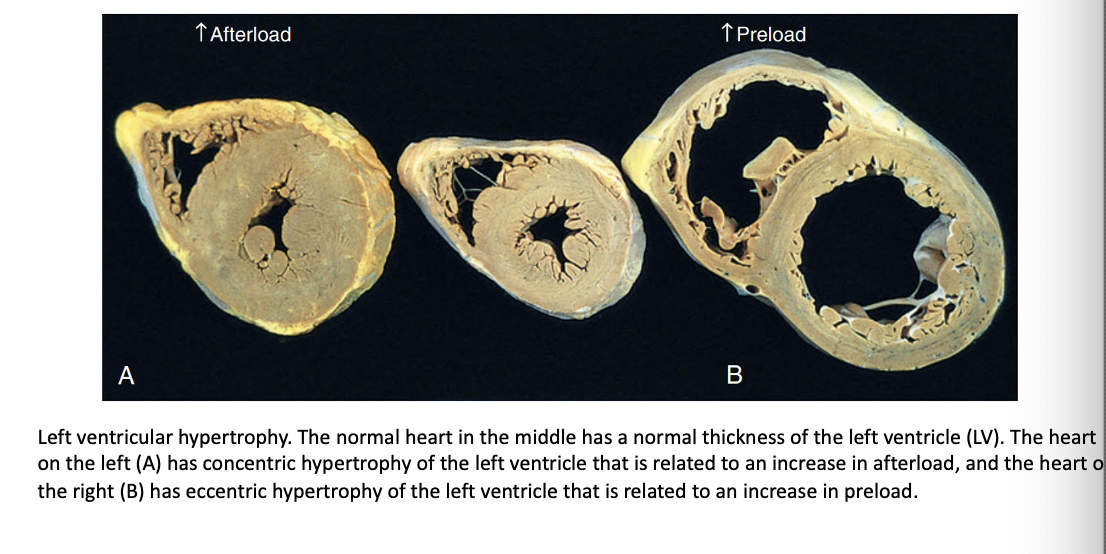 Ventricular hypetrophy = compensatory change related to alterations in pressure and/or vilume imposed on the wall of the ventricle.